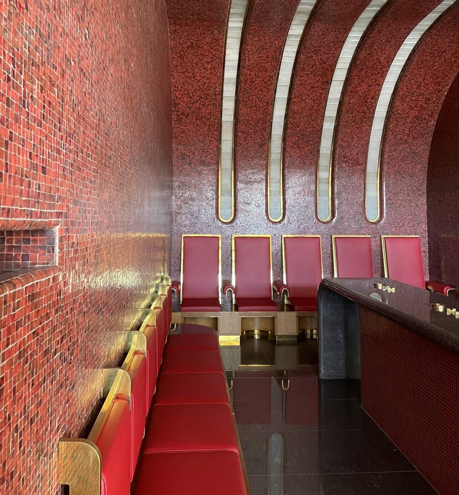 La sala d’aspetto, oggi restaurata, conserva il fascino originario e rappresenta un esempio dell’architettura razionalista del tempo, contribuendo al valore culturale dell’intero complesso.