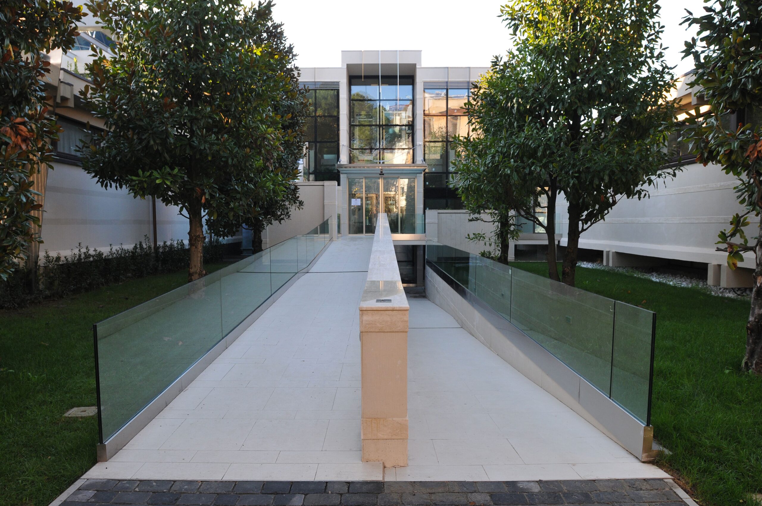 Nel giardino esterno, la fontana centrale in bronzo, opera dello scultore Antonio Maraini, rappresenta una ninfa che versa acqua da un’anfora, simboleggiando la generosità della natura che dona le sue acque benefiche all’umanità.