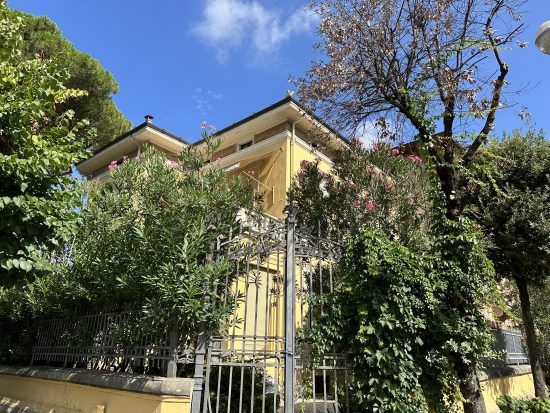 Il Villino venne costruito ad angolo con Viale della Quieta, con il fronte principale orientato verso sud e presenta un vasto balcone angolare con loggia: l’intento del progettista era proprio quello di creare continuità tra giardino e loggia.